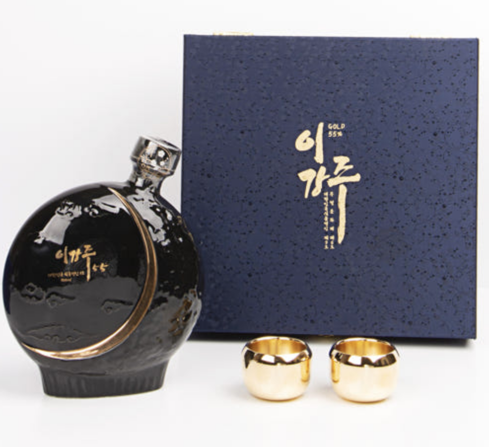 이강주 25도 도수 보다 높고, 고급진 케이스와 금잔이 포함된 이강주 금빛달명세트는 가격인 16만원~17만원 정도 가격을 가지고 있습니다. 이강주의 시그니쳐 색상 청록 그린색상이 아닌 블랙과 금색의 조합을 맞춰 나와서 격식있는 선물로 드리기 좋은 세트입니다.