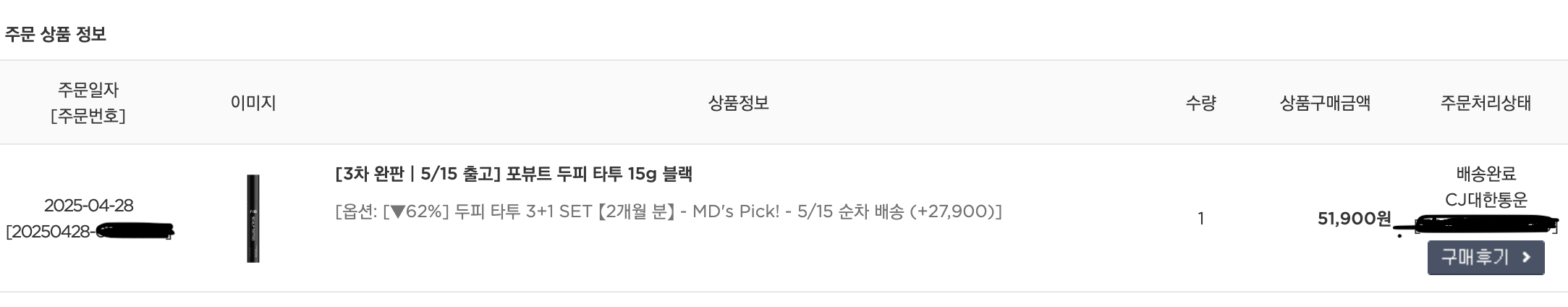 - 배송: 순차배송(보통 1~3일 내 도착)