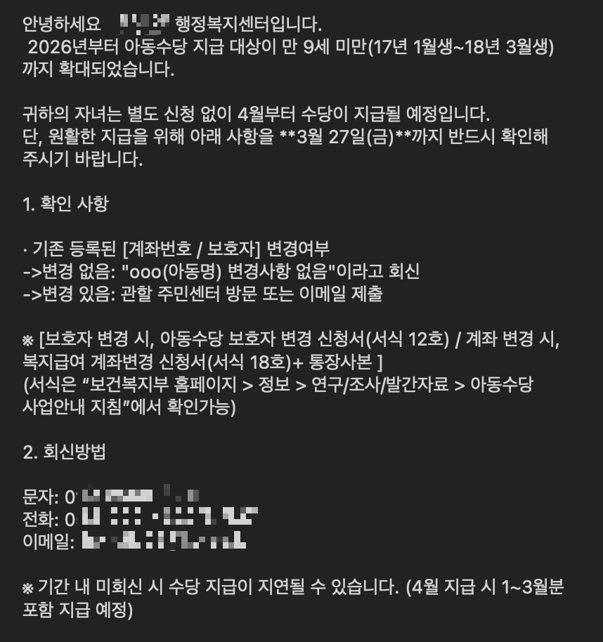 2026년부터 아동수당 지급 기준이 변경되면서 대상 범위가 확대되었습니다.