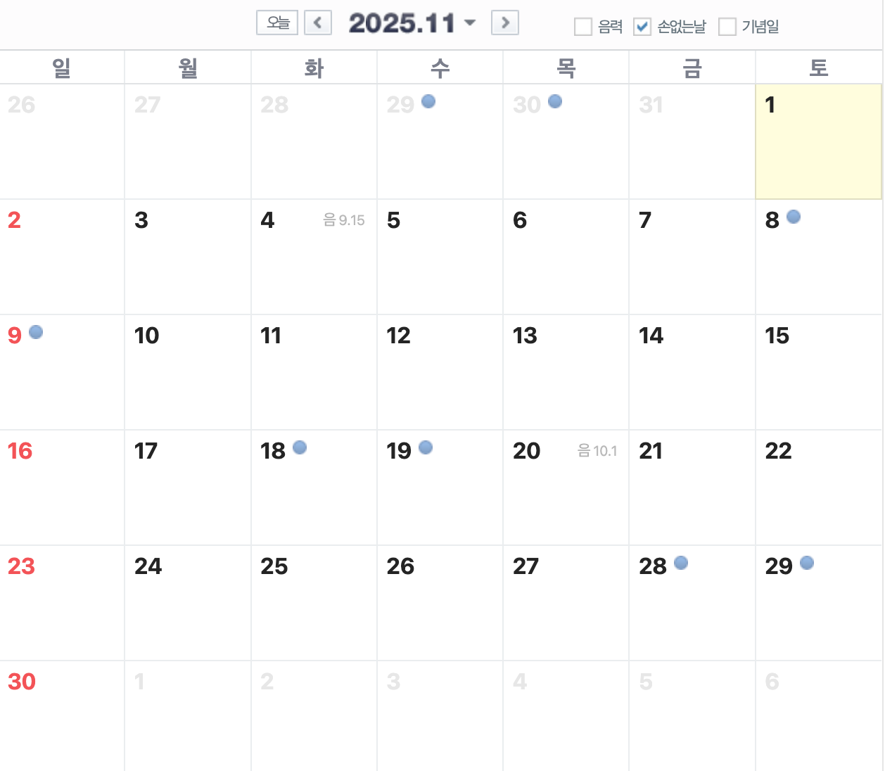 11월은 손 없는 날이 많아 선택의 폭이 넓습니다.