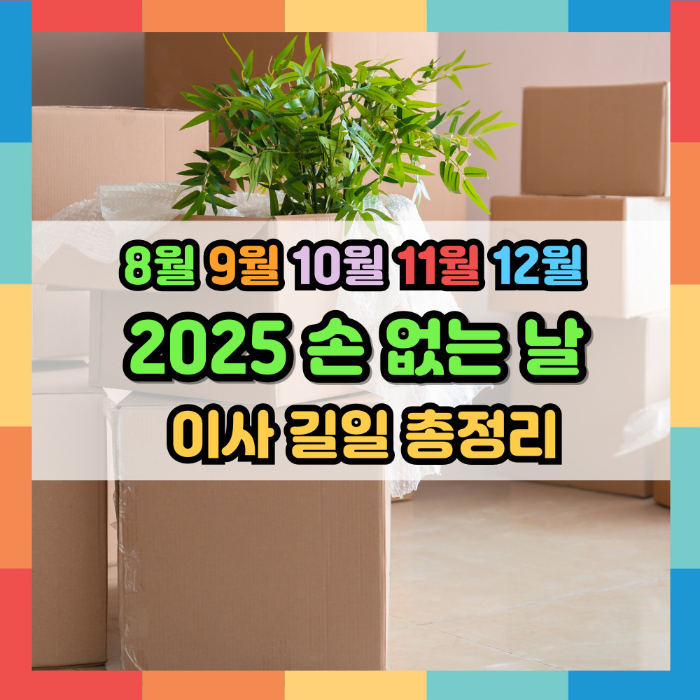2025년은 윤달이 들어 있어 이사 길일 선택의 폭이 넓습니다. 특히 8월 윤달 손 없는 날은 풍수적으로 매우 좋은 날이므로 이사, 개업, 집수리에 적극 활용하면 좋습니다.