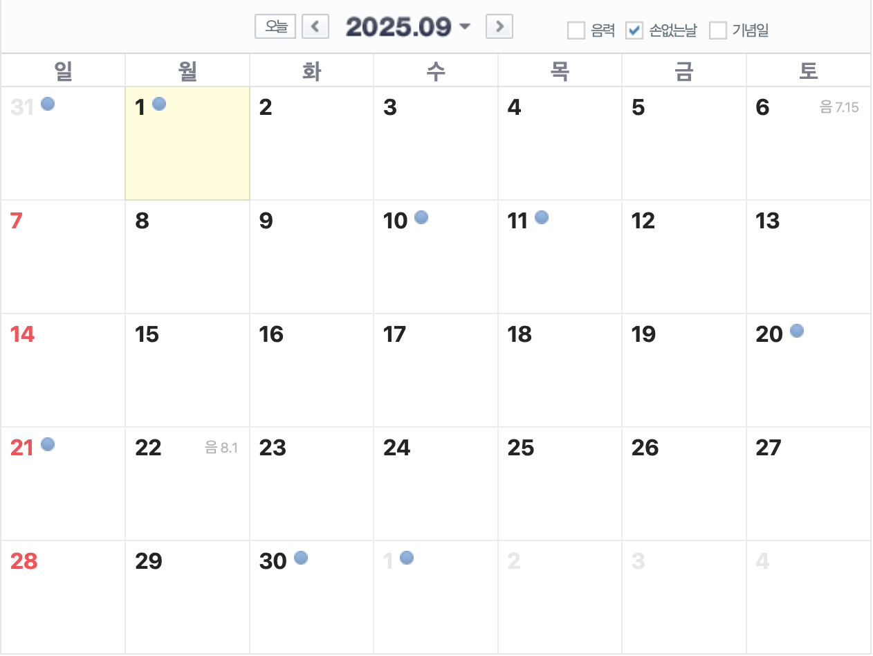 이번 글에서는 2025년 하반기(8월~12월) 손 없는 날을 음력·양력 달력 기준으로 정리해 드리고, 특히 윤달과 겹치는 손 없는 날을 중점적으로 알려드리겠습니다.