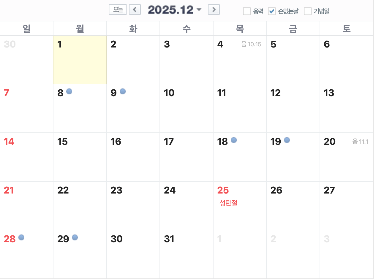 2025년 12월 손 없는 날