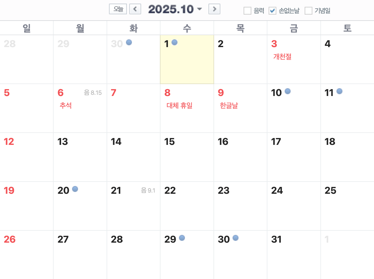 추석(10월 6일) 이후에도 손 없는 날은 꾸준히 이어집니다.