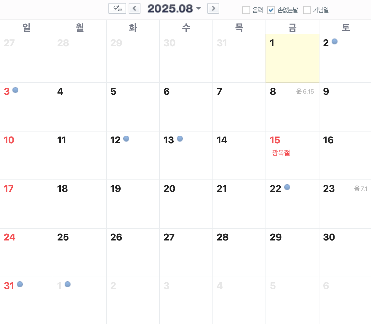 2025년 8월은 윤6월이 들어 있는 달입니다.
