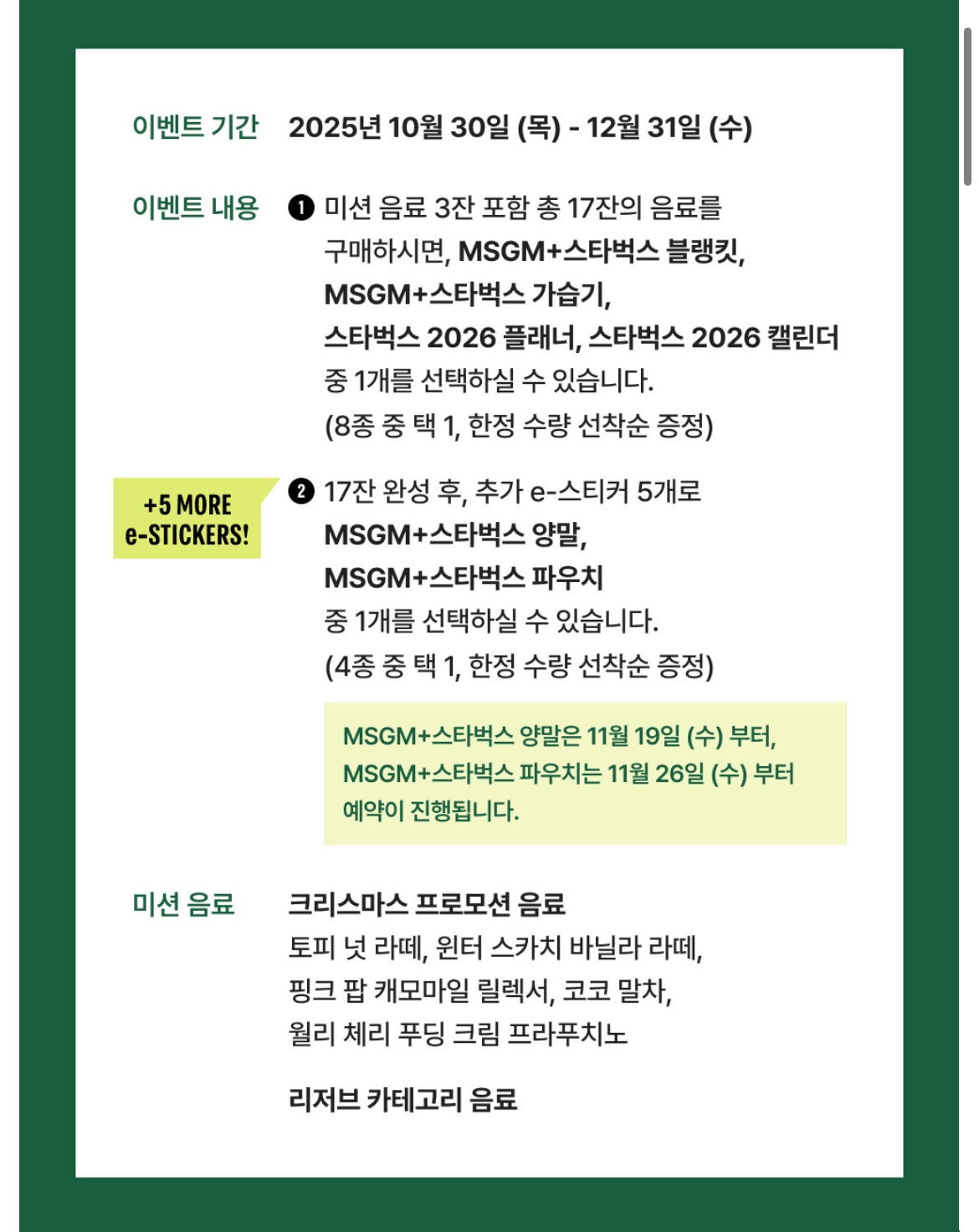2025 겨울 스타벅스 e-프리퀀시 이벤트