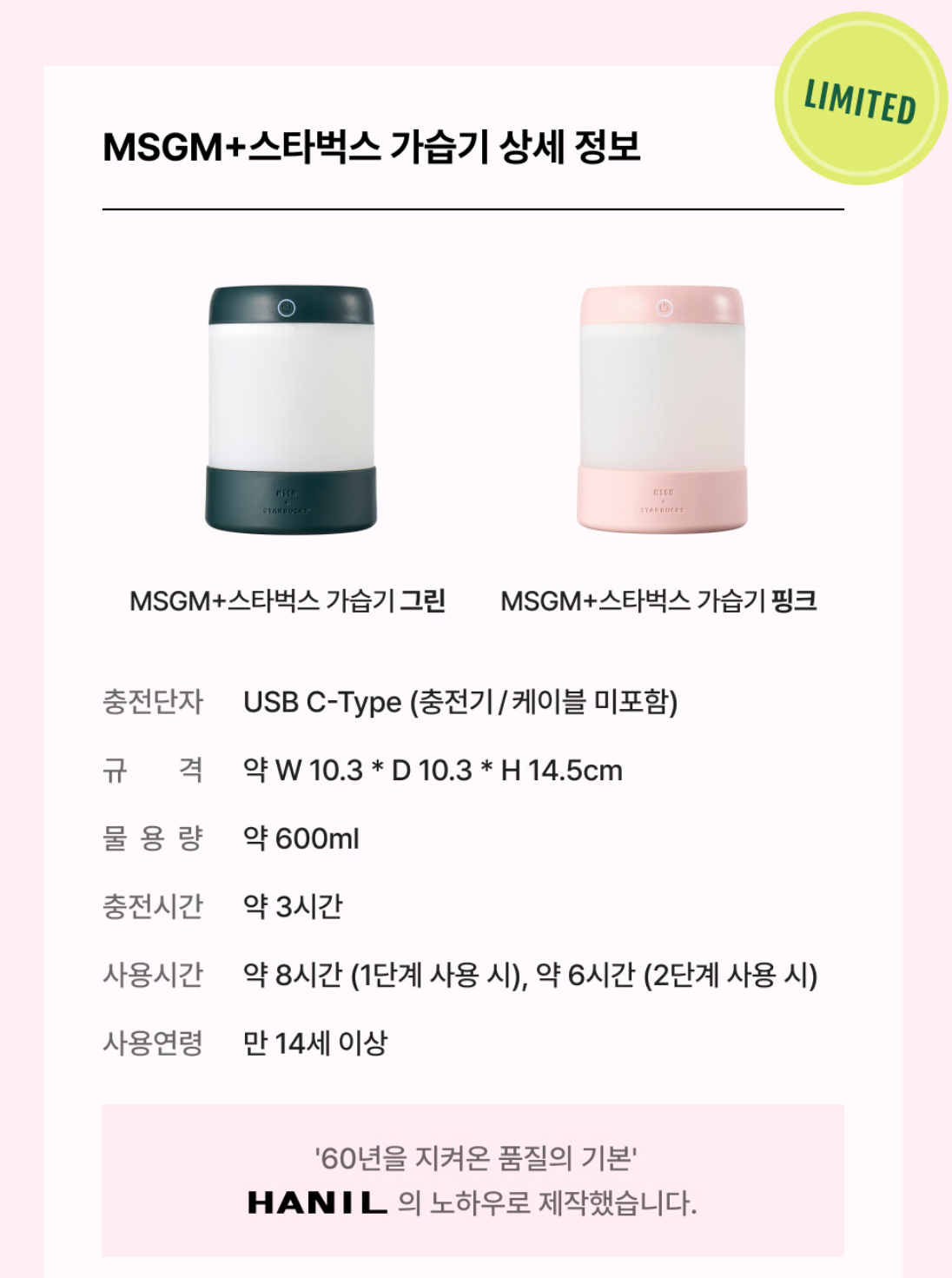 MSGM + 스타벅스 가습기 (그린 / 핑크)