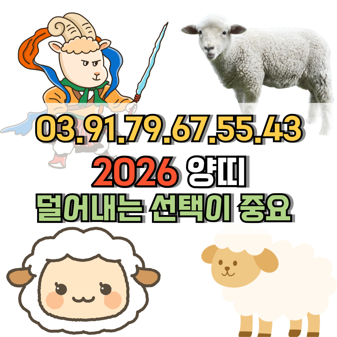 이런 해에 양띠(未)는 겉으로는 큰 변화가 없어 보여도 내부적으로는 방향을 정리해야 하는 중요한 흐름에 놓이게 됩니다. 즉, 2026년 양띠 운세의 핵심은 “얼마나 많이 움직이느냐”가 아니라 “무엇을 정리하고 무엇을 남기느냐”에 있습니다.