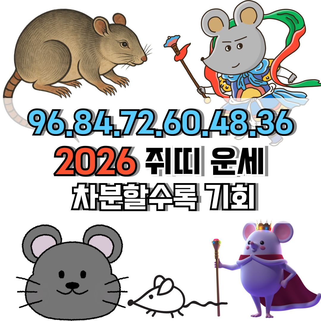 📌 2026년 양화 기운에서는 쥐띠가 불안 → 과잉 계산 → 타이밍 상실의 흐름에 빠지기 쉬우므로 완벽한 확신을 기다리기보다 “충분히 안전한 수준”에서 움직일 필요도 있습니다.