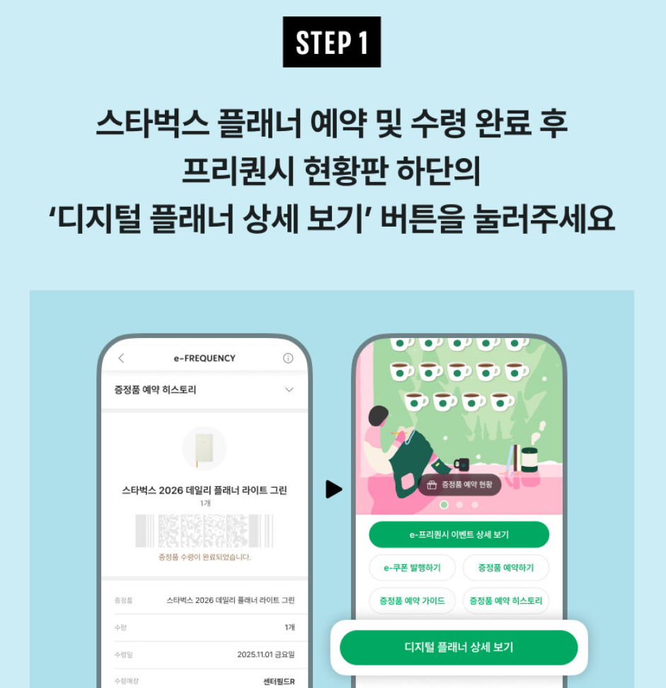 • 프리퀀시 수령 → 앱에서 디지털 플래너 받기